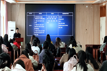 3月14日下午,我校系列学术讲座在医护实训中心学术报告厅举行。此次讲座由公共课教学部英语教研室主任吴雷达副教授主讲,讲座的主题为“新时代高职高专EGP英语翻转课堂设计”,100余名青年教师聆听了讲座。