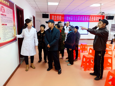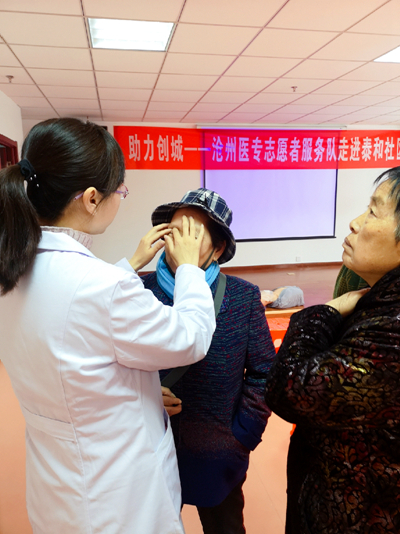 义诊服务队一行10余人在医学系第一党支部书记、副主任徐智广同志的带领下,走进我校创城结对社区——新华区南大街泰和社区。附近的社区居民听说学校举办义诊,都早早的来到了医院等候,并自觉地排好了队伍。服务队为居民免费提供保健讲座、疾病诊疗、健康咨询、测血压、测血糖及急诊急救技能指导等服务,并让现场群众体验了中医养生保健操、刮痧、按摩等中医药特色服务项目。前来参加义诊的群众络绎不绝,现场井然有序。师生们耐心细致地为每一位居民提供个体化的建议与指导,让他们在家门口就能享受到优质的中医服务。