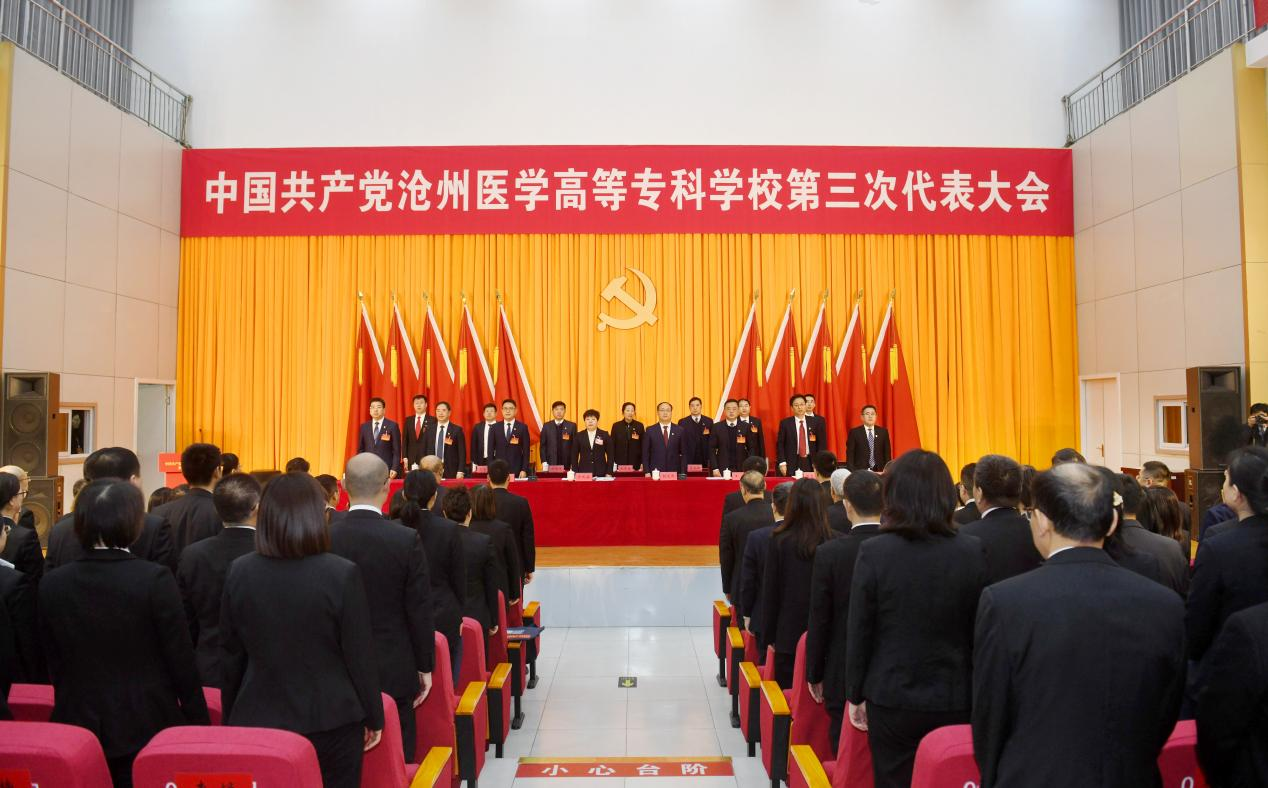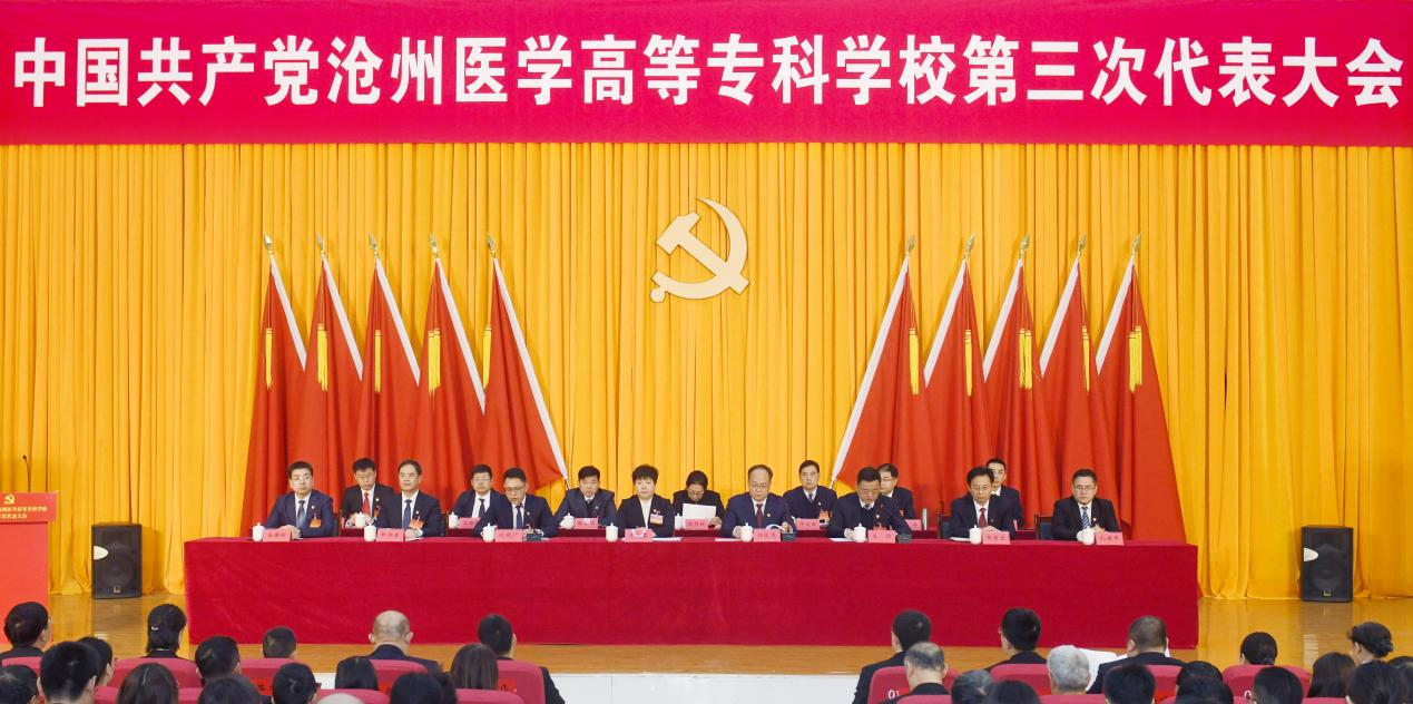 中共沧州市委组织部副部长杨文通、中共沧州市委教育工委副书记代砚广出席大会并讲话。学校党委书记才晓茹代表中国共产党沧州医学高等专科学校第二届委员会向大会作报告。学校党委副书记、校长王衍主持会议。