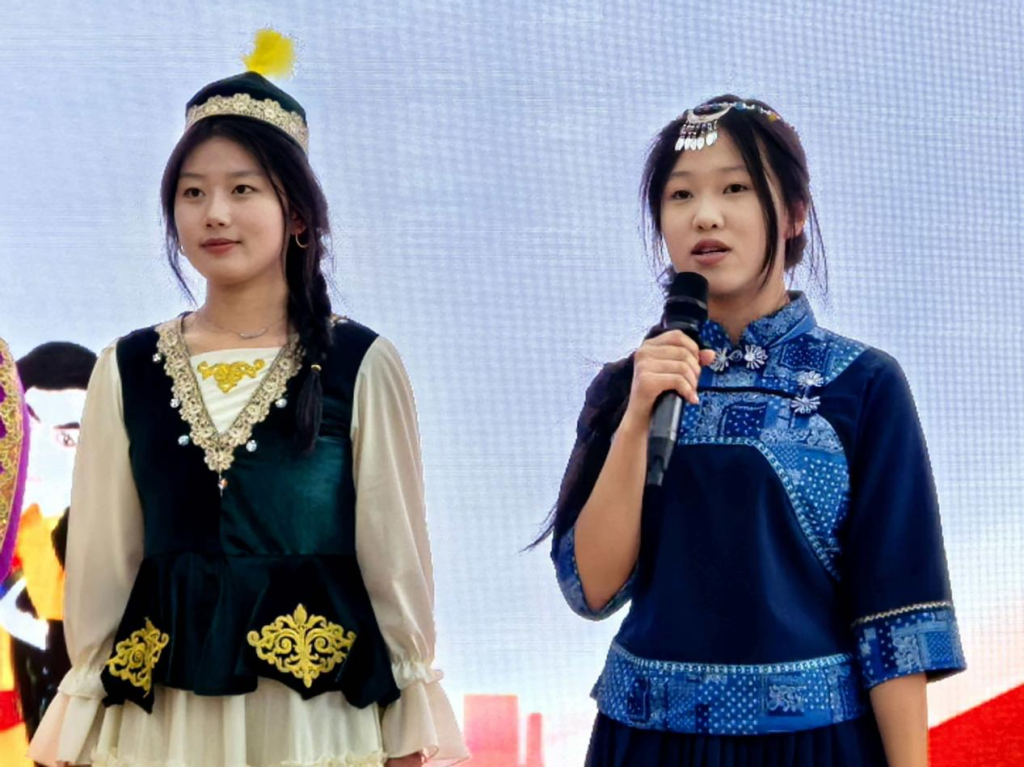 当身着 56 个民族传统服饰的学子依次登台,全场瞬间为之动容:蒙古族服饰的豪迈大气、苗族服饰的灵动秀美、维吾尔族服饰的绚烂夺目、藏族服饰的端庄典雅......五十六种服饰绽放五十六种光彩,五十六句告白诉说五十六份深情,生动诠释“五十六族兄弟姐妹是一家”的最美模样,展现出中华文化百花齐放、交融共生的蓬勃生机。