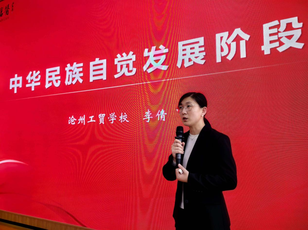 本次思政课打破校际壁垒、贯通学段差异,创新采用理论讲授、历史溯源、互动体验、文化展演四维融合模式,摒弃传统说教式授课,以有高度的理论、有深度的历史、有温度的故事,让思政教育入脑入心、落地生根。学校党委书记才晓茹教授、我校教师刘翠、沧州工贸学校教师李倩联袂主讲,以真挚讲述、鲜活案例、暖心互动,将“石榴籽”精神深植青年心田。