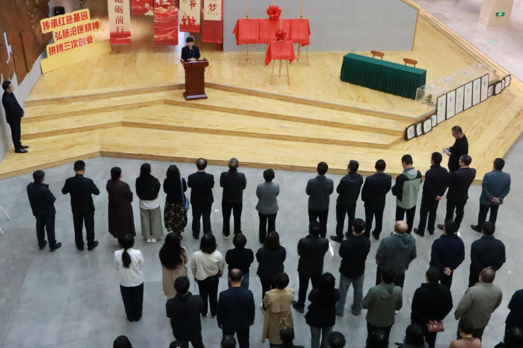 张中兴与郑琳共同为“爱光艺术空间”揭牌,该空间以我校首任校长雷爱光先生命名,是“大美沧医”与“大爱沧医”文化理念的生动体现。这里不仅是艺术展示的窗口,更是医学生涵养人文精神、提升审美素养的“第二课堂”。