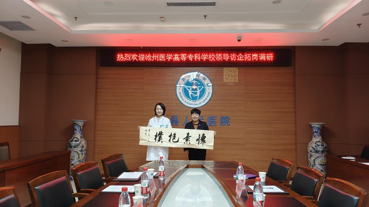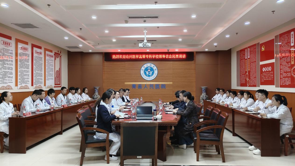 为深入贯彻落实《教育强国建设规划纲要(2024-2035年)》精神,深化医教协同育人机制,10月21日,学校党委书记才晓茹、副校长王国明率相关系部负责人赴我校教学医院——青县人民医院开展访企拓岗调研活动,精准对接临床教学需求,优化人才培养体系,共谋区域医疗卫生人才培养发展新路径。青县人民医院党委书记秦丽洁,党委副书记、院长韩世利,副院长王铭等陪同调研。