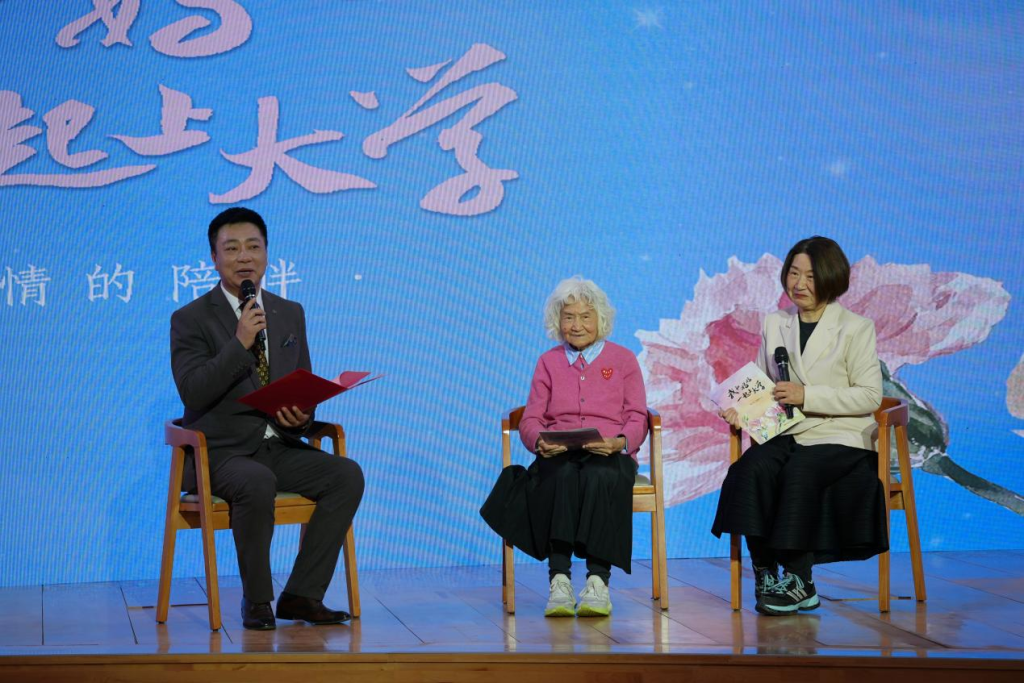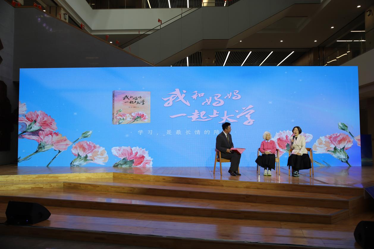 活动现场,国家老年大学86岁学员连素华与女儿周小玲的故事感动全场。母女二人同窗共读五年,携手学习、共同成长,合著《我和妈妈一起上大学》,用行动诠释“做妈妈的教练,不做妈妈的保姆”的陪伴理念。母女现场朗读《拉着妈妈的手》,以质朴文字传递亲情与书香力量,生动展现终身学习、乐享银龄的时代风貌,引发全场强烈共鸣。